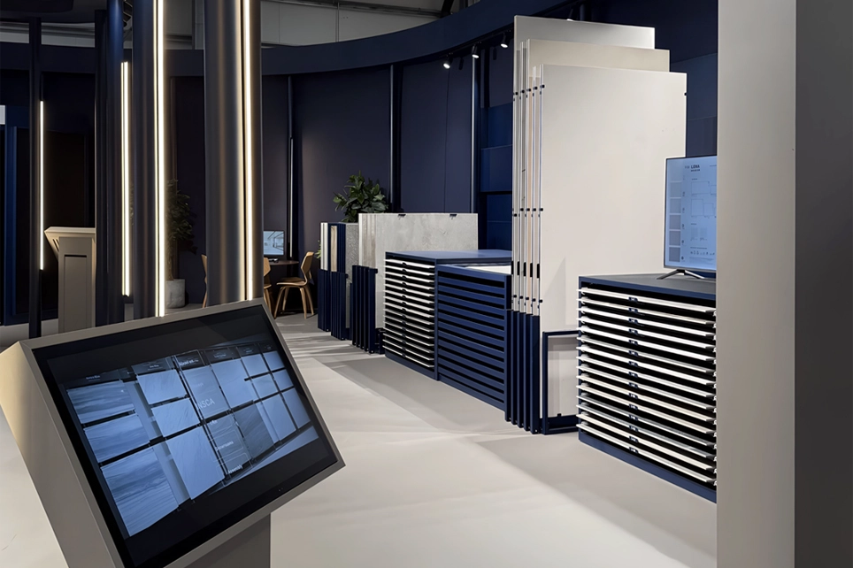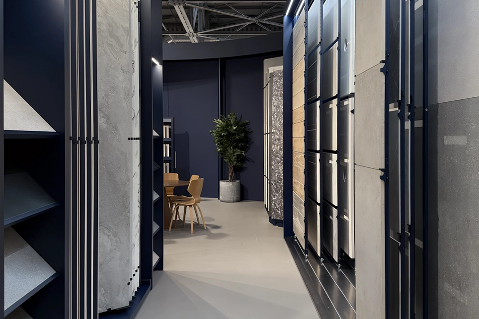 Although our main focus at this year’s Cersaie trade fair was on small formats and sample digitalization, we know that large formats continue to grow and are increasingly playing a more important role in building materials showrooms.