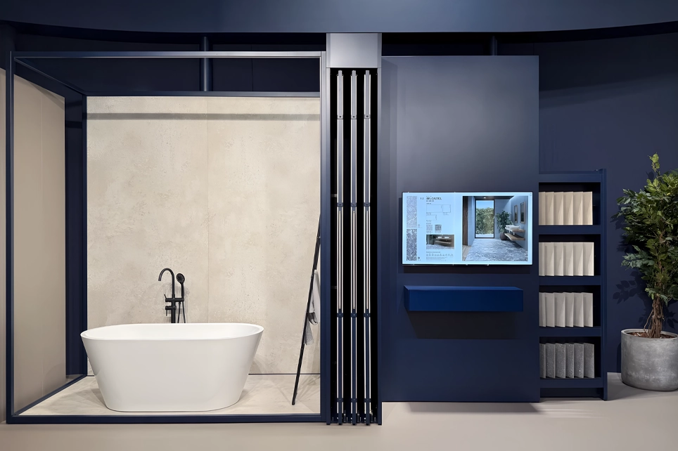 Our “This Changes Everything” campaign is also reflected in the other ceramic tile displays we are presenting at Cersaie. Each one is designed to optimize the showroom experience, facilitate the sales team’s work, and improve customer purchasing decisions.